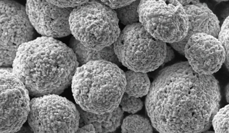 Agglomerated and sintered gray/black spherical or nearly spherical particles with good flowability