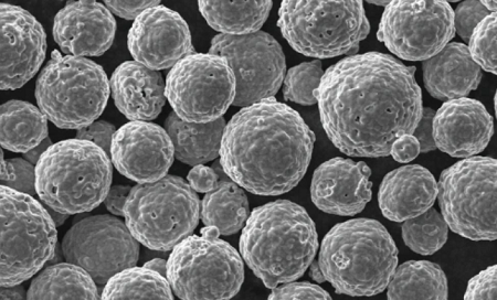 Agglomerated and sintered gray/black spherical or nearly spherical particles.